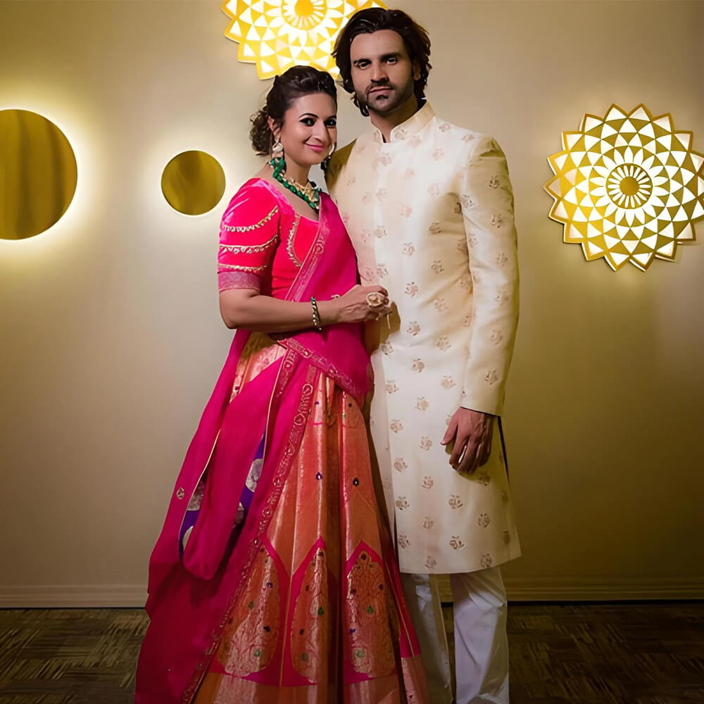 Divyanka Tripathi radiated charm & vibrance in our fuschia silk lehenga with blouse & dupatta