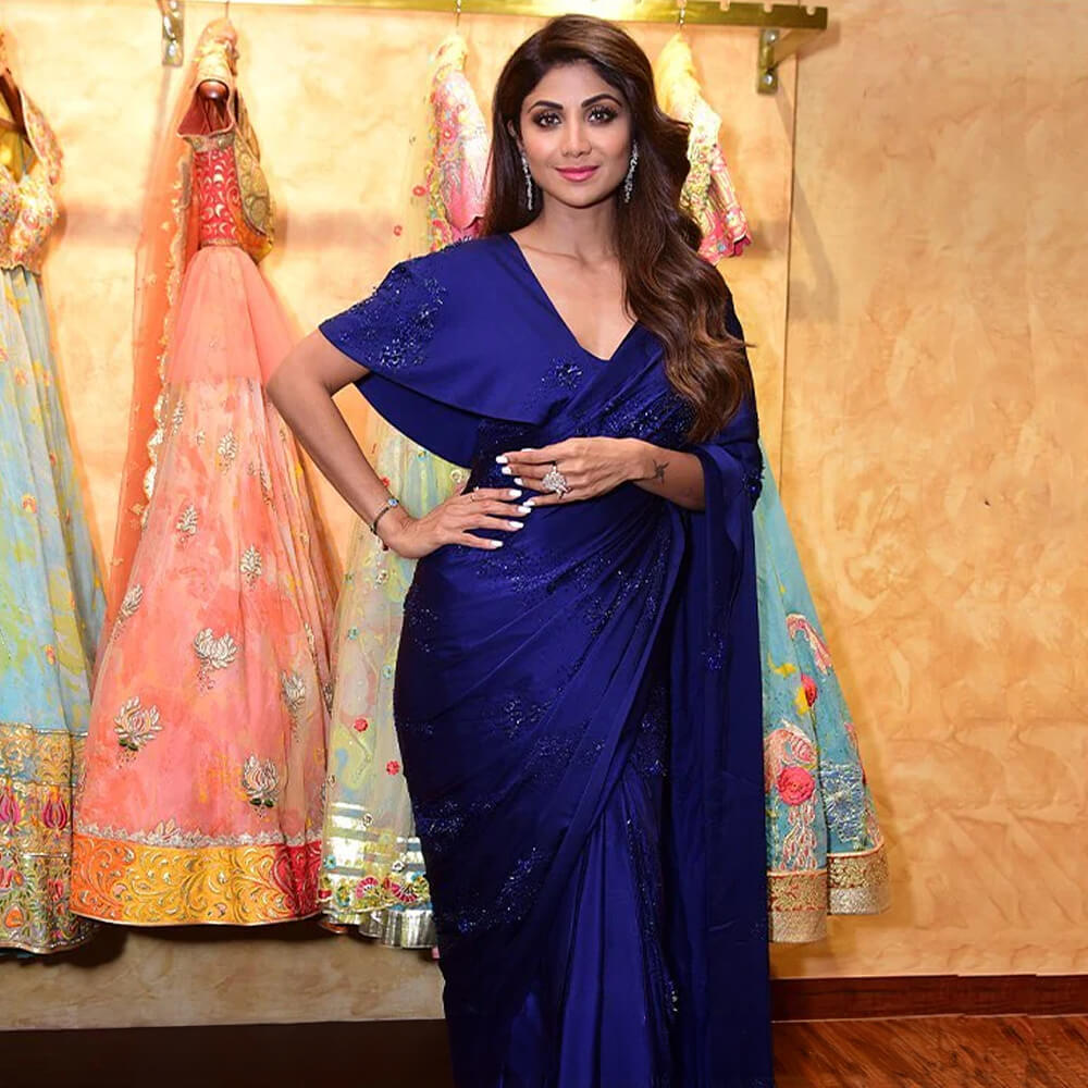 A true vision- Shilpa Shetty radiates elegance in a blue satin silk saree with a ruffle sleeved